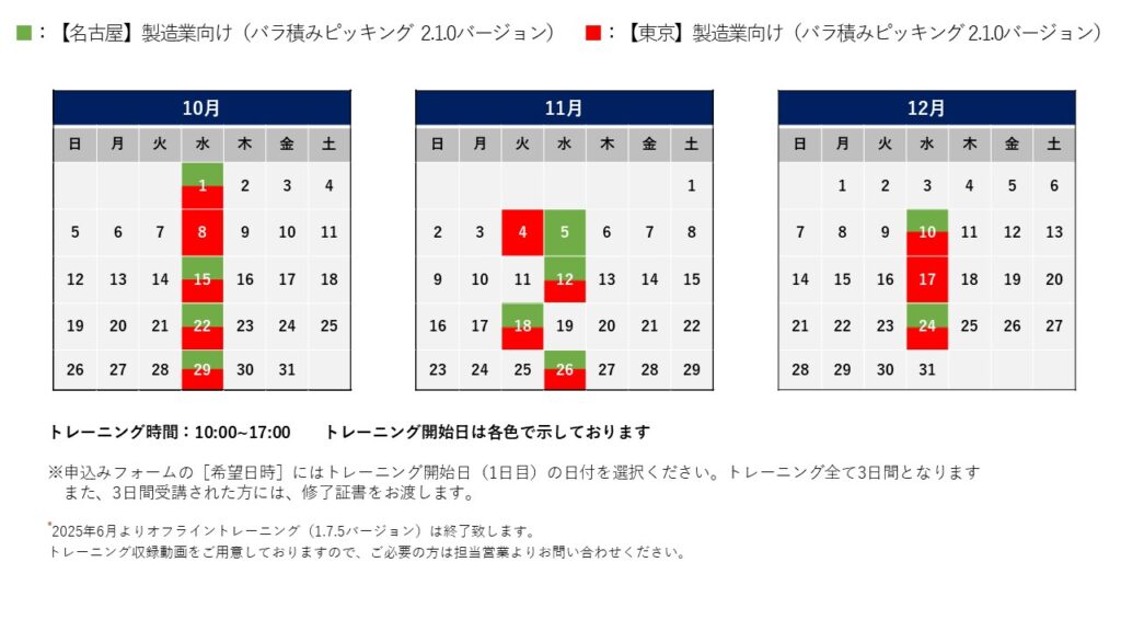 2025年10~12月トレーニングスケジュールのご案内 2025.10.01 トレーニングのご案内 2025年10月~12月のトレーニングスケジュールを公開いたしました。ご興味のある方は、是非こちらよりお申し込みください。 記事一覧へ