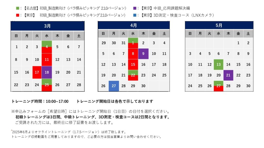 2026年3~5月トレーニングスケジュールのご案内